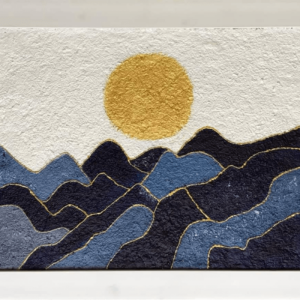 - Materials: I use multiple materials that includes high grade paint, paper, canvas, wood, glass, lacquer, pottery, leaf, copper sand, clay, paper, plaster, gold leaf, and even whole objects to provide unique feel & texture and bring this artwork to life.