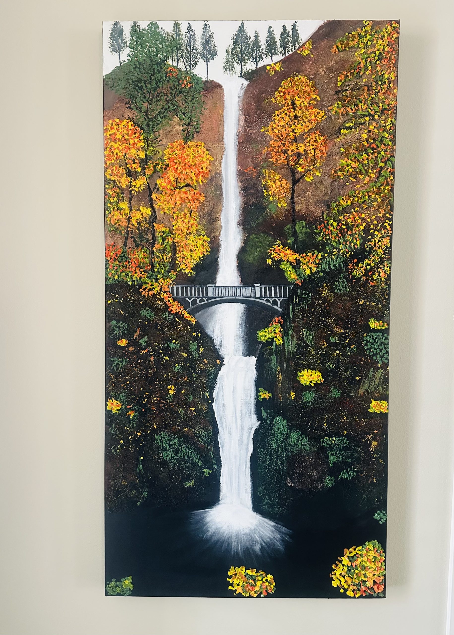 Sand textured Multinomah falls painting