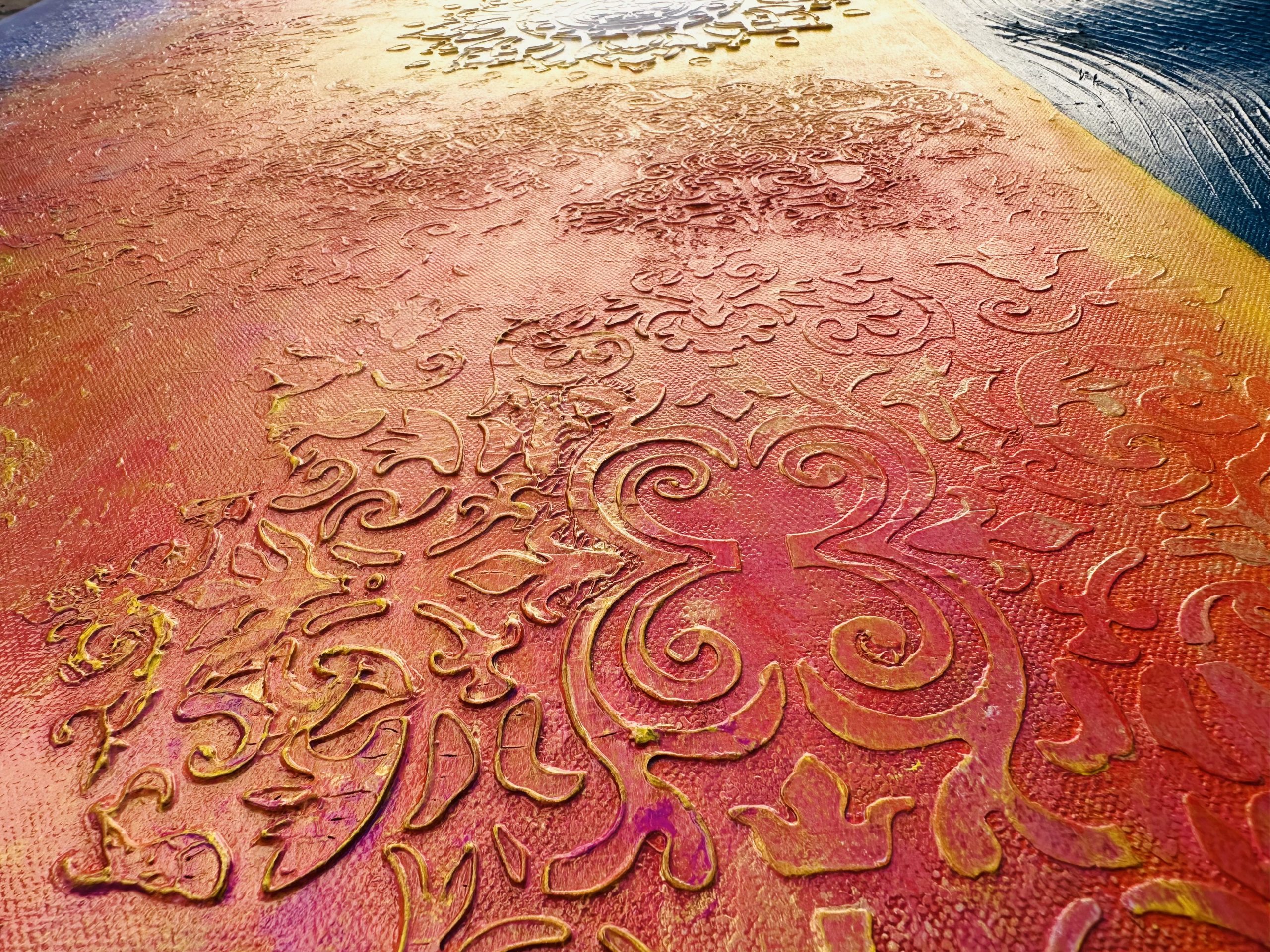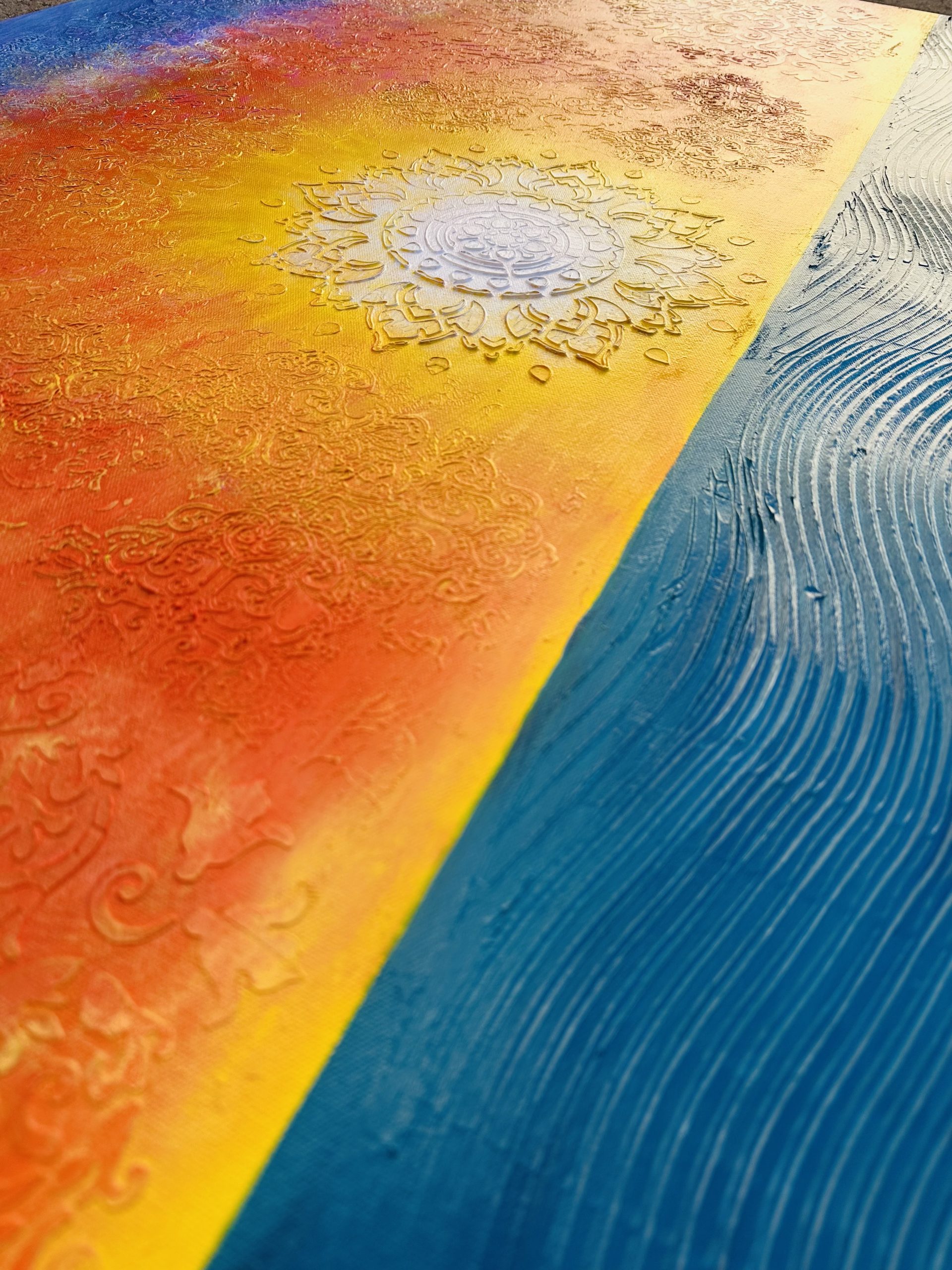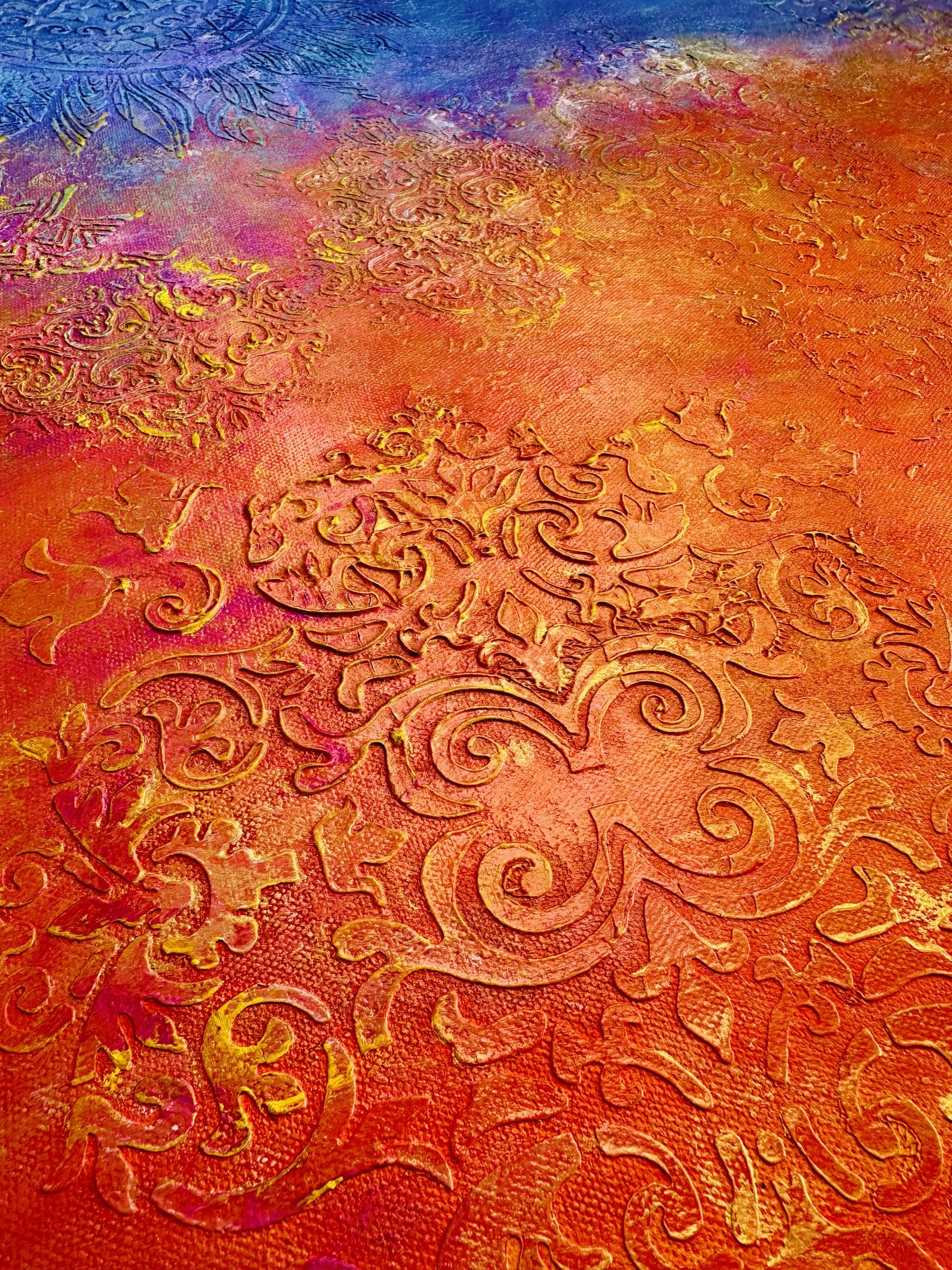 The rich texture adds depth, dimension, and a sculpted feel that makes the painting come alive from every angle.