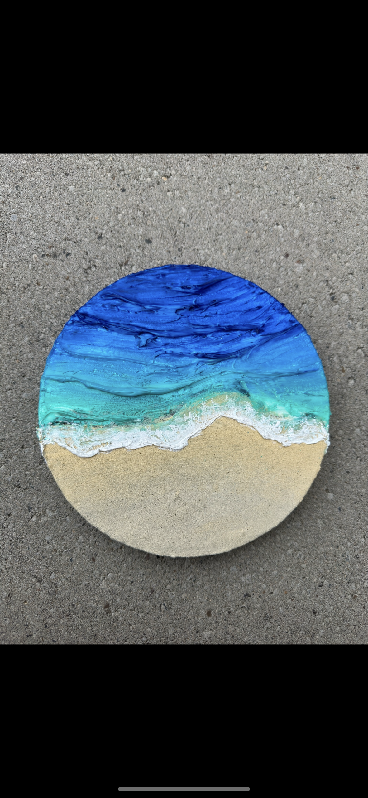 This beach-themed texture painting beautifully captures the meeting of gentle waves and soft sand. Rich layers of texture bring the shoreline to life—crisp white foam, flowing blue waves, and warm sandy tones create a calming coastal atmosphere. The tactile details add depth and movement, making this artwork perfect for bringing a refreshing, beachy vibe into any space. Ideal for ocean lovers, coastal décor, and anyone seeking a soothing, nature-inspired piece.